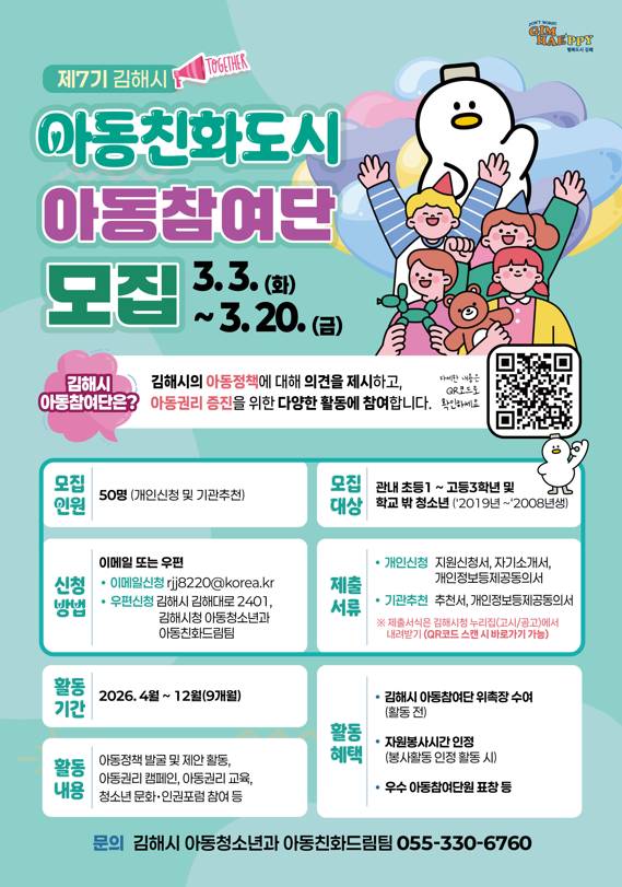 2026년 제7기 김해시 아동친화도시 아동참여단 모집 홍보
