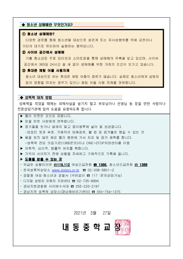 <성폭력 예방 가정통신문 - 부모가 자녀에게 알려주는 성교육>