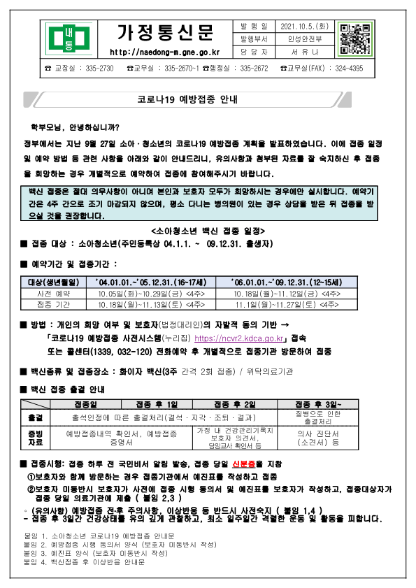 잘 숙지하신 후 접종을 희망하는 경우 개별적으로 예약하여 접종에 참여해주시기 바랍니다.