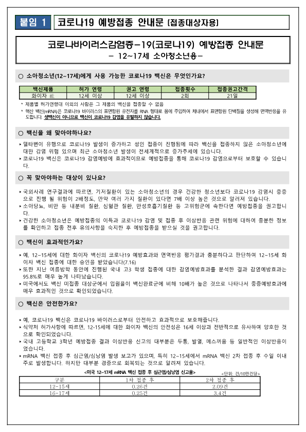 정부에서는 지난 9월 27일 소아·청소년의 코로나19 예방접종 계획을 발표하였습니다.