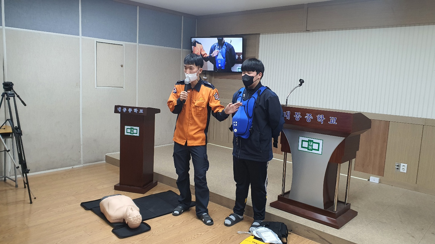 김해시 동부 소방서 소방관님께서 본교를 방문하여 전교생 대상으로 심폐소생술 및 응급처치 교육을 실시해 주셨습니다. 일상 생활 속 발생할 수 있는 응급 상황에 대처할 수 있는 지식과 기술을 습득하는 유익한 시간이 되었습니다.