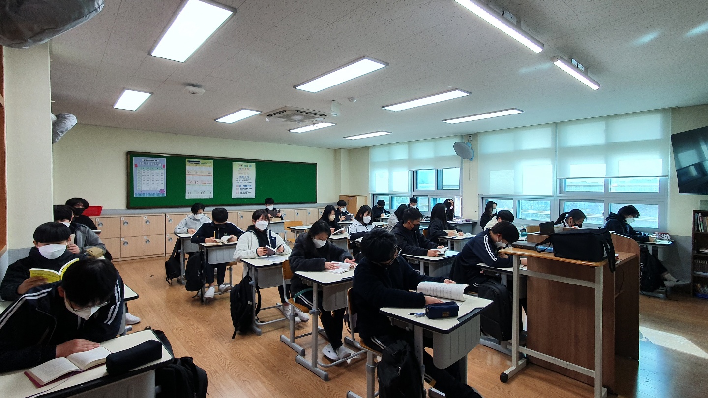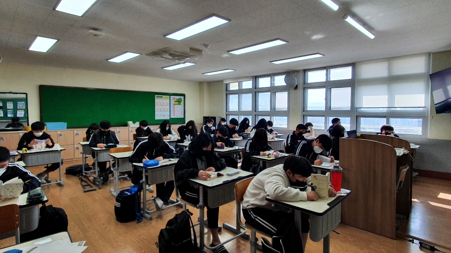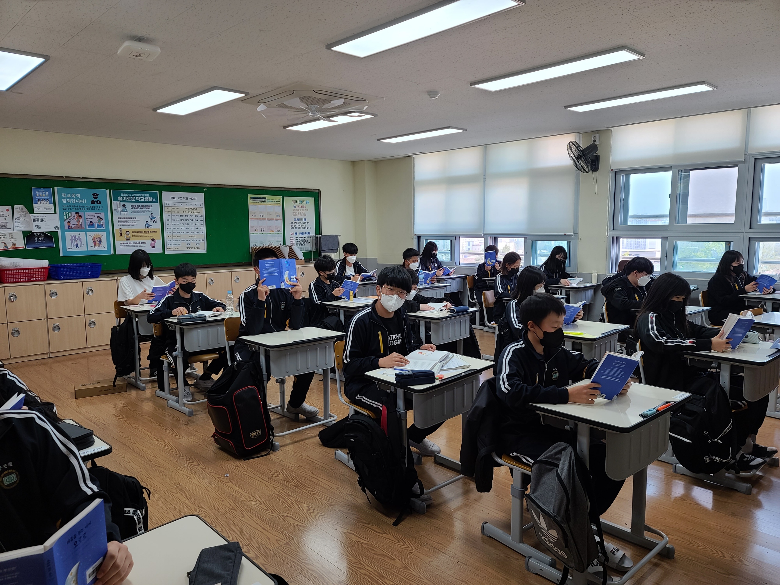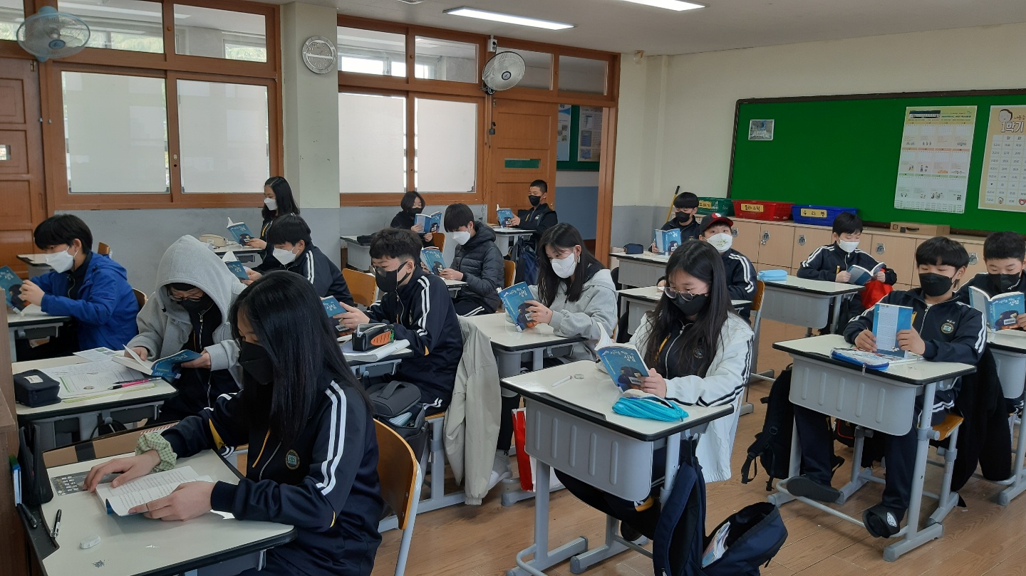 본교 전교생이 아침 시간을 활용하여 담임교사와 독서로 함께하는 사제와 함께하는 동행 독서 하는 모습입니다.