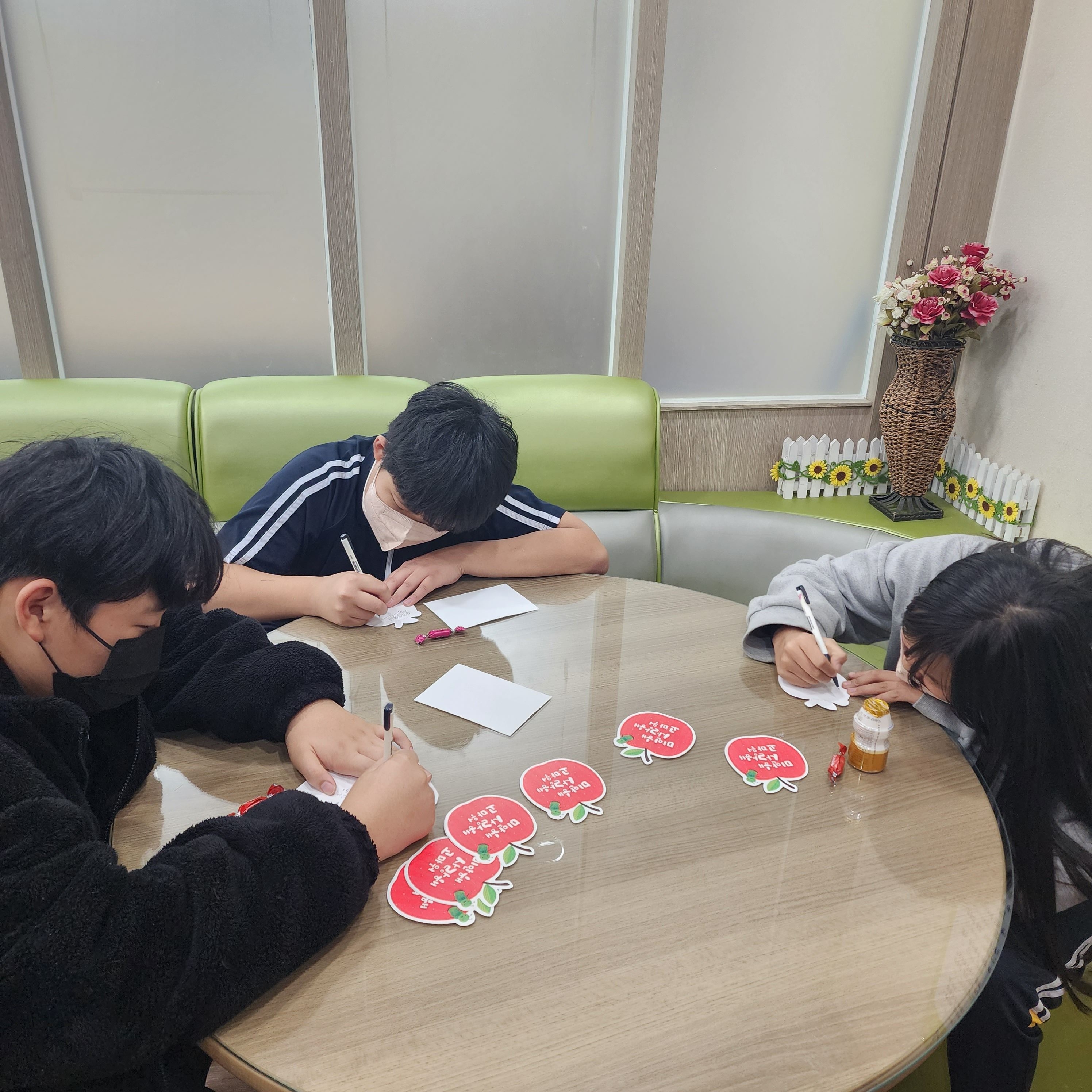 사과주스와 쿠키로 대체되어 사과편지와 함께 전달되었습니다.