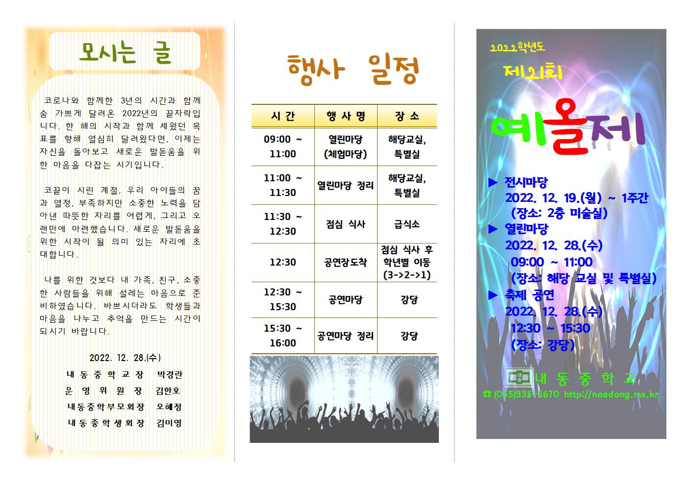 2022학년도 학교축제 제 21회 예올제가 본교 강당에서 12시 30분~ 열렸습니다.
