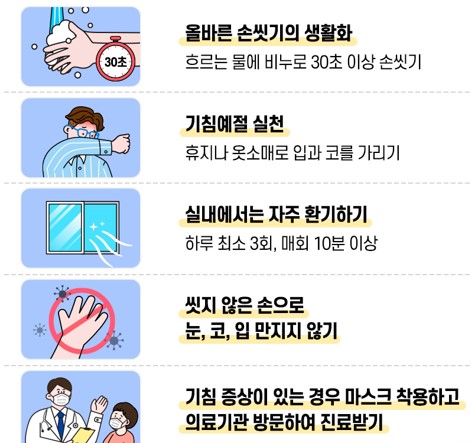 1. 체육예술건강과-16982(2024. 12. 2.) 2. 급성호흡기 감염병 및 백일해가 지속적으로 유행중이므로 호흡기 감염병 예방수칙을 적극적으로 실천하셔서 예방관리에 협조 부탁드립니다.