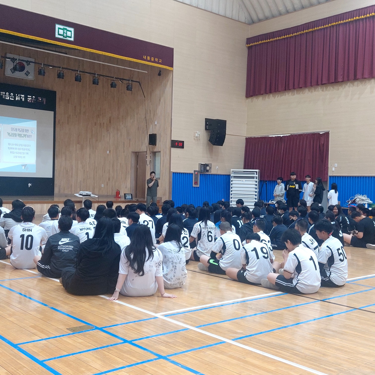 5월 14일 체육한마당 실시 전 모두의 학교를 위한 학교문화책임규약 캠페인을 실시하였습니다.