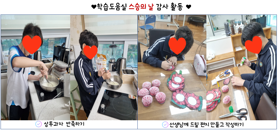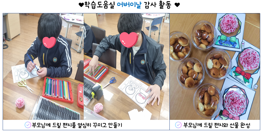 5월 어버이날과 스승의날을 맞이하여 학부모님과 선생님들께 감사드리는 활동을 하였습니다.